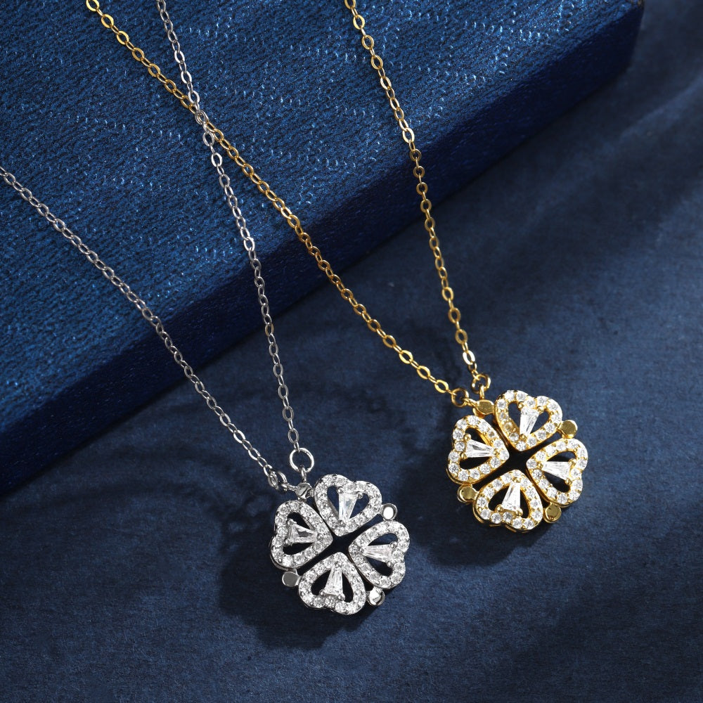 Silberne Kette mit magnetischen Kleeblattherzen